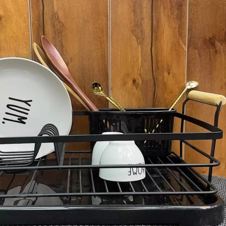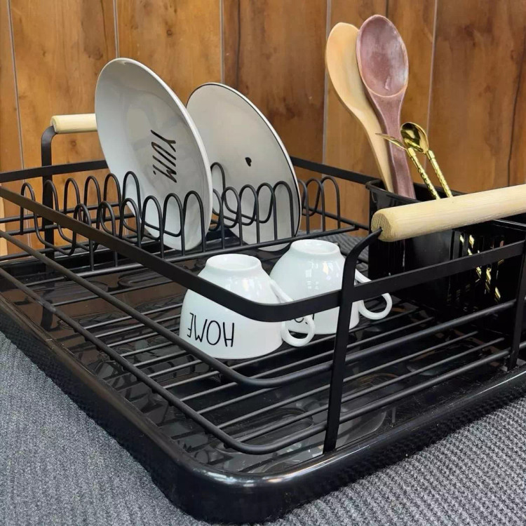 جاظرفی فلزی بسیار شیک رنگ مشکی دسته چوبی بامبو جنس عالی که با آب خوردگی زنگ نمیزنه و بسیار محکم