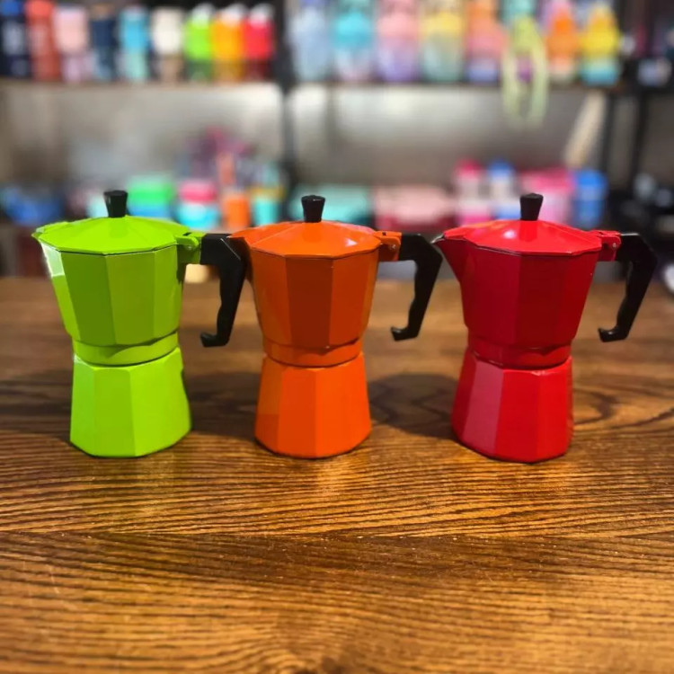 قهوه جوش سه کاپ قهوه جوش جنس فلزی در رنگهای مختلف و رنگ استیل یا نقره ایی کیفیت عالی