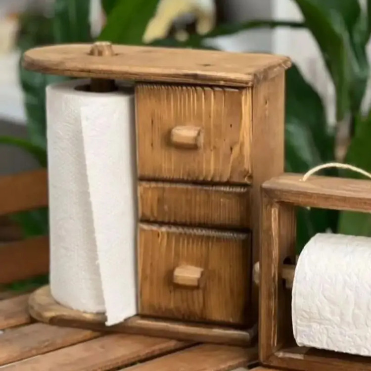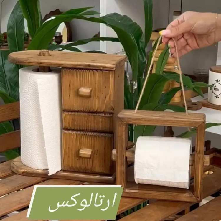 استند دستمال حوله ایی چوب روس رنگ قهوه ای تیره دوتا کشوی ۱۰ سانتی بسیار کاربردی