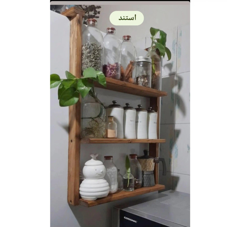 استند شلف دیواری جنس چوب روس شما میتونید به کابینت و یا یخچال آویزون کنید