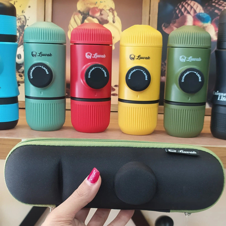 مینی پرسو نانو قهوه ساز لواک یه نفره بسیار کاربردی همراه کیف همرنگ خود محصول کپسول دار