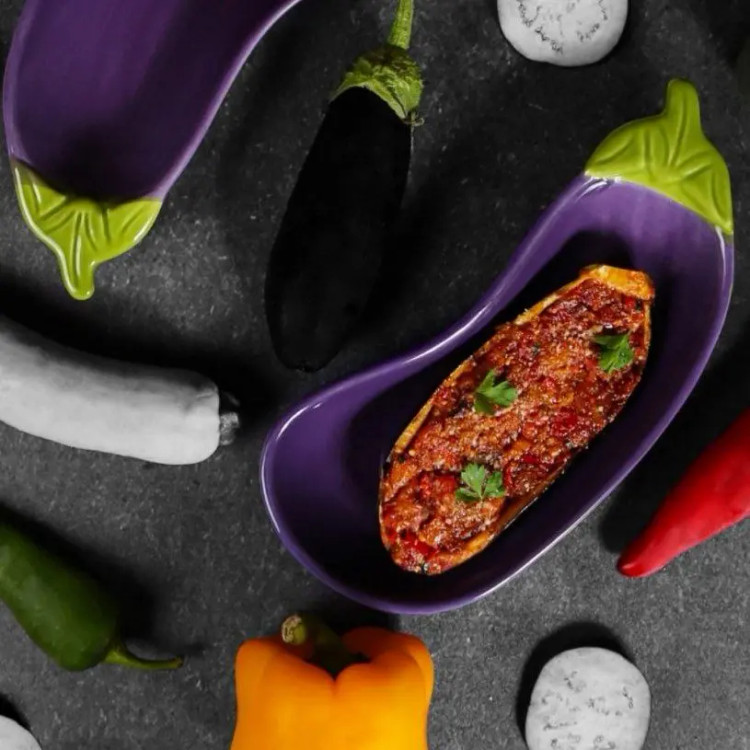 ظرف سرامیکی طرح بادمجان بسیار شیک کاربردی مخصوص خورش بادمجان یا کشک بادمجان عالی میشه