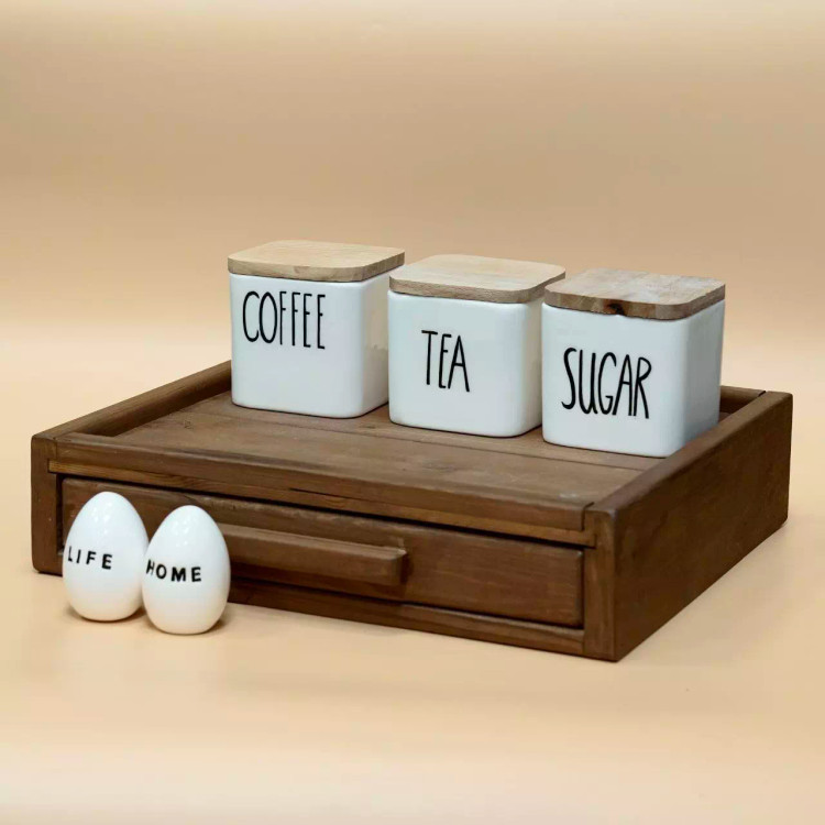 باکس چوبی کشو دار رنگهای قهوهای و طوسی و سفید خیلی کاربردی باکس رومیزی یا روی کابینتی بسیار شیک و زیبا